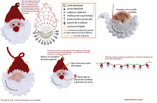 Para a barba, com o fio branco, monte 11 corr., prenda com 1 p.bx. no último p. vermelho do chapéu e